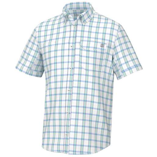Huk Men's Tide Point Button-Down Short-Sleeve Fishing Shirt - The Huk Tide Point Short-Sleeve provides superior performance, designed for comfort and durability both on and off the water. 100% polyester 30+ UPF Mechanical stretch Quick drying Moisture transport Mesh-backed chest pocket Perforated back Interior eyewear wipe Button roll up sleeves Chest pocket Style: H1500202
