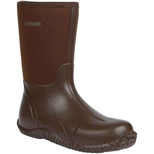 Northside Men's Shoshone Falls Mid Waterproof Insulated Neoprene All Weather Hunting Boots - The Shoshone Falls Mid is a versatile, everyday, reliable neoprene boot to keep you warm and dry for all adverse conditions. Rugged 12 inch mid calf upper features water tight neoprene shaft Waterproof rubber shell with fully insulated lining Waterproof seam sealed construction to keep your feet dry Moisture wicking neoprene lining keeps feet warm and dry Removable/washable EVA insole offers extra cushioning for your feet Stain and water resistant shell provides lasting wear Pull on style makes it easy to get on and off Durable multi directional rubber outsole ensures traction/shock absorption/good abrasion resistance in snowy or icy conditions Style: 920975M