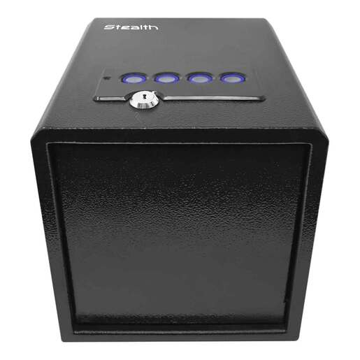 Stealth Safes Electronic Handgun Hanger 5 Gun Pistol Safe - Black - With a completely revolutionary design, the Stealth Handgun Hanger Safe allows you to store up to 5 handguns, with your favorite 3 handguns at the ready, plus an additional 2 handguns on the interior foam-lined floor. Inspired by tactical enthusiasts' desire for handguns at the ready, there is nothing faster than a drop down door and your choice of 3 "hanging" handguns to choose from. When speed and your family's protection is the most important factor, there is no better option than the Stealth Handgun Hanger Safe. The quick access electronic keypad stores your customizable 6-digit code and illuminates with a blue light after the first button is activated. With audible feedback, you'll know the button has been pushed and after the correct combination is completed, the spring loaded door flips down to present your pistols. As the door reaches it's last 1/2" of opening, a speed reducer activates and allows the door to drop open while the red interior light simultaneously turns on allowing you to easily see inside - even in the dark. The Stealth Handgun Hanger Safe has an optional silent mode. Included with the Stealth HHS is a Power cable that plugs into the power port on the side of the safe. With all steel construction, a 3/8" thick 2-piece steel door and the battery located on the inside, this safe is insanely difficult to tamper with and extremely pry-resistant, preventing unauthorized access and leaving you feeling confident that your children will not be able to access your handguns. New and Improved, this Stealth Handgun Hanger Safe is totally Straw & Pick Proof with the addition of a welded steel lock housing that prevents anything from tampering with the release mechanism. When not plugged in, the Stealth Handgun Hanger safe can run off of a 9-volt Duracell battery located on the inside. As a mechanical entry method, you can use one of the included 2 laser-cut backup override keys to open your safe. The safe comes with an new and improved security cable that screws from the other side eliminating the extra keys and providing more strength and security, ensuring that no one will be able to steal the safe itself and walk out with it. The Stealth HHS Handgun Hanger Safe is completely lined with high density foam on all sides of the interior and the rods have a smooth, scratch-resistant coating to ensure no damages occur on or inside your most prized handguns. The safe is finished with a tactical black paint job. 3/8" Thick 2-Piece Solid Steel Recessed Door 16 Gauge Steel Body High Strength Locking Latch Anti-Pry Tabs Solid Steel Construction New Welded Steel Housing – StrawithPick Proof Optional Silent Mode Free Security Cable 4 Bolt Down Holes 3 Handgun Hangers Inside Holds 3 Handguns at the Ready Position Rods will not work with .22 Caliber Rods have scratch resistant coating Quick Access Spring Loaded Drop Down Door 2-Way Access System 6-Digit Electronic Keypad Mechanical Backup Override Keys Red Interior Light Interior Lined with High Density Foam Speed Reducer on last ½” of Door Opening for Quiet Entry Power Port & Battery Compartment