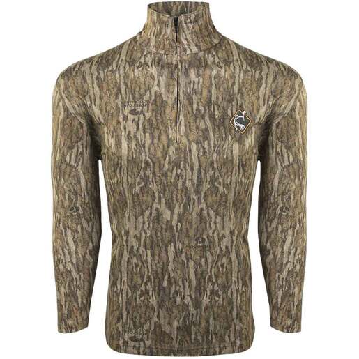 Ol' Tom Men's Mossy Oak Bottomland Performance Quarter Zip Hunting Shirt - This performance fabric shirt is unbeatable for hot-weather turkey hunting. The moisture-wicking Performance 1/4 Zip has a deep front zipper for quick ventilation and a semi-structured collar for additional concealment and sun protection. The ultralight fabric is very comfortable, dries quickly, and resists fading even after multiple washes. 92% polyester, 8% spandex Moisture-wicking Ultralight Soft hand feel Cool-wearing Style: OT3120-MOBL