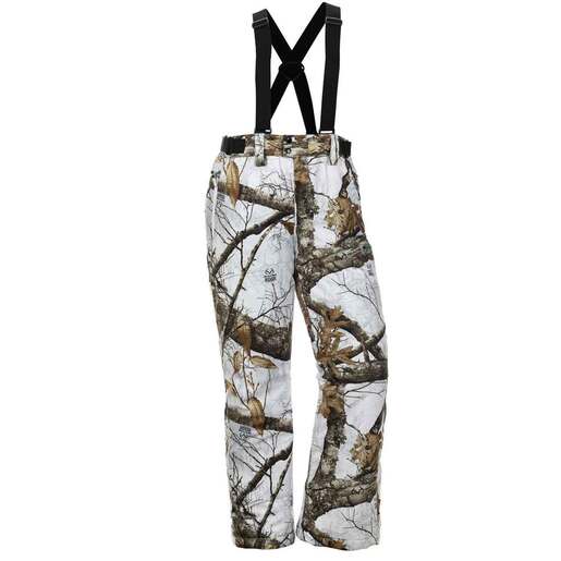 DSG Outerwear Women's Realtree Edge Snow Addie Waterproof Hunting Pants - Perfect for hunters of all skill levels, the Addie bib remains one of the most popular items in the field. Without sacrificing warmth, fashion, and functional attributes, the Addie is the most affordable cold weather hunting set. The suspenders are easily removable to convert the bibs to pants and the adjustable snap inseams allow you to find the perfect length with ease. Quiet brushed tricot fabric Durable waterproof repellent 120g of polyfil insulation Removable suspenders Adjustable inseam: 32.5in to 28.5in Adjustable waist tabs Female exclusive sizing and fitment Style: 51087-RTESNOW