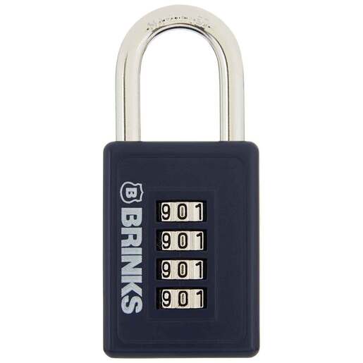 Brinks 40mm 4 Dial Resettable Sports Padlock - Brink’s Resettable Combination Lock features a 40mm zinc die-cast body and is enhanced with a chrome plated, hardened steel shackle. The padlock is equipped with a four-dial combination lock for a keyless convenience, is easy-to-use, set, reset and customizable for extra security. The padlock is ideal for use for school and gym lockers, bikes, and storage containers. Features Security - 4-dial combination lock is easy to set, use, and reset when needed. Strength - Steel shackle has a cut Strength up to 4000 lbs. Quality You Can Trust - A global leader in Security-related products and services, the Brink's name is synonymous with top quality products to keep you and your belongings safe.