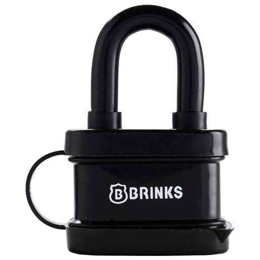 Brinks 40mm Laminated Steel Weather Resistant Padlock - Brink’s Weather Resistant Padlock features a laminated steel 40 mm body with a chrome plated, hardened steel shackle wrapped in vinyl for increased cut resistance. The padlock is equipped with brass 4-pin tumbler, dual lever locking mechanism for pick and pry resistance and a key cylinder cover to keep dirt and grime out for long lasting performance. The padlock can be use indoors or outdoors. With its superior corrosion resistance, it is perfect for use in any wet climate and the harshest environments. The padlock is ideal to use to secure doors, gates, sheds, trailers, storages, chains and other items subjected to the elements. Features The entire lock is vinyl wrapped for use in wet climate and/or harsh environments. Strength - Steel shackle has a cut Strength up to 2317 lbs. Quality You Can Trust - A global leader in Security-related products and services, the Brink's name is synonymous with top quality products to keep you and your belongings safe.