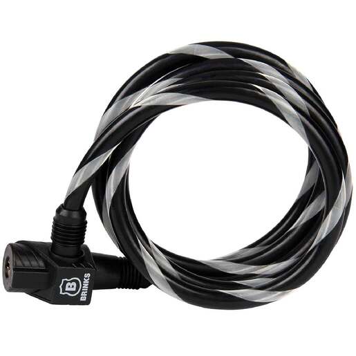 Brinks Keyed Locking Flexible 3/8in Steel Loop Cable - Brink’s Keyed Locking Cable features a twisted steel core with a heavy-duty vinyl protective wrap to prevent marring and corrosion. The ‘Reflex’ stripe is added for extra protection and visibility. The cable measures 3/8 in. in diameter and is 6 ft. long. The cable is ideal for securing motorcycles, ATVs, trailers, grills, and other outdoor valuables. As a global leader in security-related products and services, the Brink's name is synonymous with top quality merchandise, ‘A Trusted Name in Security since 1859’. Features: Features- Brinks’ flexible twisted steel cable has a heavy-duty vinyl protective wrap to prevent marring and corrosion. A colorful “Reflex” stripe has been added for additional protection and visibility. Measurements- Measures 3/8" in diameter and is 6 ft. long with loop ends, with a cut Strength of 3100 lbs. Use with other Brinks Products- Able to be used with Brinks’ other padlocks, disc locks, and other Security measures. Ideal Usage- Perfect for both indoor and outdoor use. Ideal for securing bikes, gates, sheds, grills, and storage containers. Quality You Can Trust- A global leader in Security-related products and services, the Brink's name is synonymous with top quality products to keep you and your belongings safe.