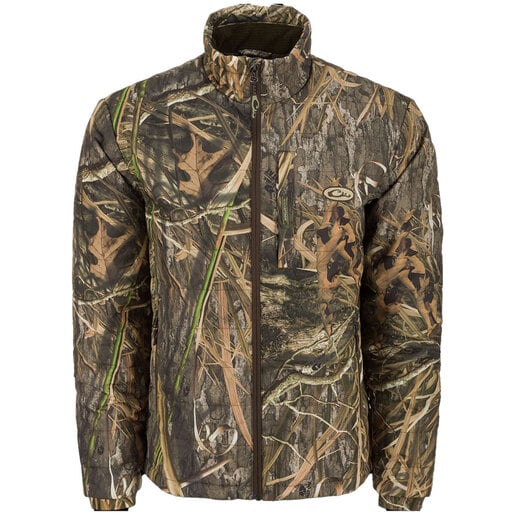 Drake Men's Mossy Oak Shadow Grass Habitat MST Synthetic Down Hunting Jacket - Don't let the light weight fool you - the MST Synthetic Down Pack Jacket is incredibly warm and versatile. The jacket is packable and zips into its vertical chest pocket, making it the perfect size for stowing in a blind bag, ATV, or boat. 150g synthetic down insulation 100% polyester, abrasion-resistant Matte finish shell fabric with DWR (Durable Water Repellent) Reinforced elbow patches Packs into inside stow pocket Magnattach left chest pocket Draw cord adjustable waist with tethered cord locks for quick and secure, one-handed adjustment Lower, zippered slash pockets Style: DW1058