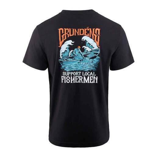 Grundens Men's Support Fisherman Short-Sleeve Fishing Shirt - Building off the successful EAT series, Support Local takes a new spin on an iconic Grundéns art program. Support Local Fishermen offers a broader reach into the entire Commercial Fishing Community. Graphic on the back Crew neck Small Grundens logo on the front Style: 50437-001