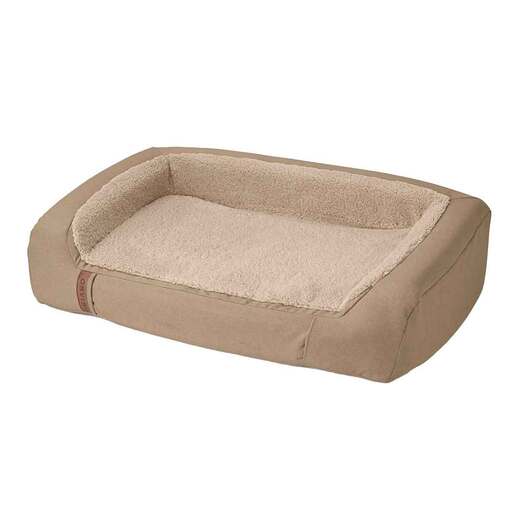 Orvis RecoveryZone FleeceLock Couch Dog Bed - Combining our supersoft FleeceLock sleep surface with our most advanced support for dogs, the Orvis RecoveryZone FleeceLock Couch Bed helps your dog feel secure and get cozy on this inviting, therapeutic bed. Our plush fleece is guaranteed to never pull or pill, and you’ll never find a bare spot. Designed to evenly distribute weight, minimize pressure points, and increase circulation, RecoveryZone dog beds help your dog recharge faster. Combining a firmer supportive base with a soft, responsive top layer, our pioneering dual-foam construction gives your dog the best of both worlds: uncompromising comfort and lasting support. Post-consumer recycled polyester/polyester cover. Post-consumer recycled polyester liner. Machine wash cover. Satisfies all sleep styles: Your dog will love to stretch, curl, or lean in this best-selling shape Three-sided bolster is made with solid, full-height foam pieces so it’ll never flop over Bolster gives your dog a sense of security while an open side makes it easier for them to get on and off Two solid foam layers combine to distribute weight, increase circulation, and reduce pressure points on joints and muscles, helping your dog recover faster 5in H mattress elevates your dog off the floor Temp-regulating, responsive 1in Serene Foam top layer promotes airflow and enhances breathability Pioneering dual-foam construction gives your dog the best of both worlds: immediate comfort and long-term support Supportive 4in base is made with low-VOC CertiPUR-US foam Great for dogs at every life stage, from growing puppies and adventure dogs to seniors with aging joints Compressed for easy-ship convenience—quick and clear assembly instructions included