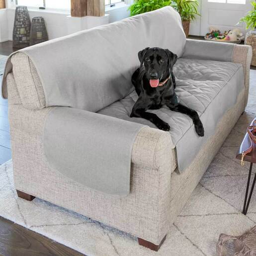 Orvis Grip-Tight Furniture Protector - Go ahead, let your dog on the couch—as long as it's covered with an Orvis Grip-Tight Furniture Protector! Water-resistant and now even more durable, these best sellers keep your entire couch fur-, mud-, and slobber-free and your dog comfy in their fave nap spot. We call that a win-win. Full-coverage protection Machine washable for easy cleanup Upgraded upholstery is super durable, quilted for your dog’s comfort, keeps your couch clean, and has a fur-masking microweave that keeps it looking cleaner, longer Breathable, water-resistant membrane protects your couch from accidents Wraparound flap with non-slip Grip-Tight backing keeps furniture cover in place Now made with 100% post-consumer recycled materials for a lighter footprint