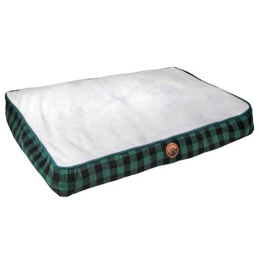Outfitters Eighty Six Polyester Dog Bed - Your Dog will love it. Dimensions are 35in L x 25.5in W x 4.3in H. The exterior shell is 100% polyester. The fill is a solid-core PP (poly) fiber insulation.
