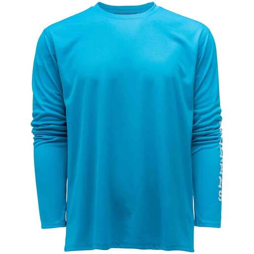 Grundens Men's Tough Sun Crew Long Sleeve Fishing Shirt - The toughest damn sunshirt on the water, UPF 50-rated Tough Sun offers anglers breathable sun protection with increased snag resistance for extra longevity both on and off the water. Ultra snag resistant interlocking knit fabric Built to provide UPF50 sun protection HeiQ Smart Temp keeps you cool & comfortable during even the hottest days Moisture wicking, quick drying, & breathability properties HeiQ Stain Away prevents gunk, liquids, & "fishy" elements from sticking HeiQ Pure Odor Control means the only thing that stinks is the fish Style: 40112