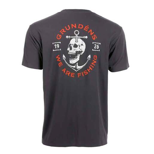 Grunden's Men's Anchor Down Short-Sleeve Fishing Shirt - High performance UPF 50 sun protection in the comfort and versatility of an everyday tee featuring a custom Grundéns skull "Anchor Down" design. The ultra-comfortable brushed polyester fabric is moisture wicking, quick-drying and soft, boosted with HeiQ Pure anti-odor finish. UPF 50 sun protection Grundéns skull "Anchor Down" design on the back Brushed polyester fabric Moisture wicking Quick-drying HeiQ Pure anti-odor finish Style: 50243