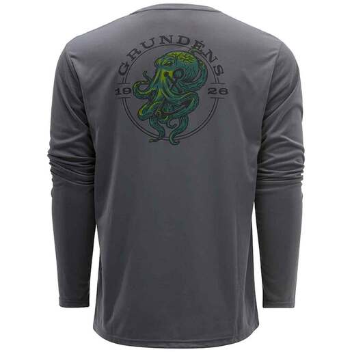 Grundens Men's Kraken Tech Long Sleeve Fishing Shirt - High performance UPF 50 sun protection in the comfort and versatility of an everyday long-sleeve tee featuring a custom Grundéns "Beware the Kraken" design. Lightweight with built-in stretch UPF 50 sun protection Wicking, quick drying HeiQ Pure anti-odor finish Style: 50261
