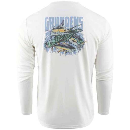 Grundens Men's We Are Salt Long Sleeve Fishing Shirt - Celebrating the classic gamefish of the pelagic zone, the iconic Billfish and Tuna species are some of the most sought after off-shore tournament fish and both hardcore recreational and competitive tournament anglers wear these fish as part of their identity as a Saltwater Angler. Ultra-soft, brushed fabric Lightweight with built-in stretch UPF 50 sun protection Moisture wicking Quick-drying Style: 50454