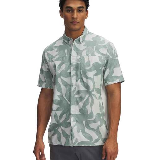 Under Armour Men's Fish Pro Hybrid Printed Short-Sleeve Fishing Shirt - On or off the water, you'll wear this gear. It's light, stretchy, dries quick - oh, and it's ridiculously comfortable too. Lightweight stretch woven fabric delivers superior comfort & durability Strategic mesh panels for added breathability where you need it most Stain release materials keep dirt from soaking in UPF 50+ protects you from the sun's harmful rays 4-way stretch material moves better in every direction Full-length, center-front snap placket with sunglasses wipe at the bottom Secure zip chest pocket Style: 425203T