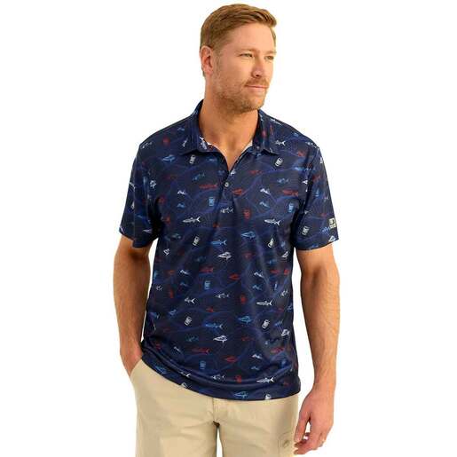 Huk Men's KC Print Pursuit Performance Short-Sleeve Fishing Shirt - The Huk Pursuit Performance Polo is built for the ultimate comfort, fit and feel both on and off the water. It features cooling fibers, sun protection and antimicrobial construction, all of the performance benefits that you would expect from Huk. 50+ UPF rating Anti-microbial Length: 30in Style: H1200635