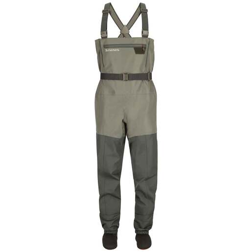 Simms Men's Tributary Stockingfoot Fishing Waders - The best value in wading, the Tributary collection from Simms features every ounce of Simms high-performing wader DNA in an affordable package. Breathable & comfortable waterproof polyester 3-layer upper & 4-layer lower Reach-through fleece lined hand-warming pocket, with zippered top stash pocket and integrated fly patch Single rear belt loop with 38mm non-stretch wading belt Built-in Gravel Guards with gathered elastic bottom hem Anatomically engineered neoprene stockingfeet with anti-microbial finish Upper: 3-layer waterproof, breathable polyester Lower: 4-layer waterproof, breathable polyester Weight: 928g Style: 14412