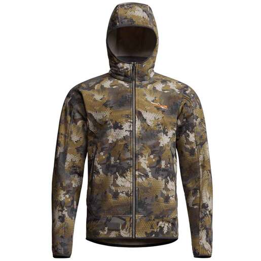 Sitka Alpha Fleece Hooded Jacket - A fleece jacket built to take a beating. A double weave stretch fleece handles rugged environments and gusts with ease while a DWR coating mitigates unexpected moisture during the hunt. The Alpha Fleece Hooded Jacket sports a seamless shoulder construction and intentionally positioned zippered pockets to ensure comfort and accessibility while wearing a pack. The low-bulk fitted hood provides coverage without encroaching on field of view. Fabric: Durable 280g, 4-way stretch double weave STORMFLEECE Durable water repellent finish sheds light moisture Seamless shoulder construction enhances comfort with a pack Two zippered pockets keep items secure and accessible even with a pack belt Mesh backed pockets offer the ability to vent for added breathability Low-bulk, form fitted hood offers protection without restricting visibility Internal zippered chest pocket keeps essentials protected and in reach Style: 600711
