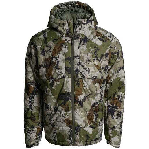 Kings Camo Men's XK7 XKG Transition Hunting Jacket - The XKG Transition Hooded Jacket is built for hunters who need dependable warmth without the weight—now with added protection from a low-profile, insulated hood. Primaloft Gold Cross Core insulation Insulated and adjustable hem hood Lightweight & packable 100% micro ripstop polyester Stuffs into hand zip pocket Water resistant treatment Stretch elastic cuffs Hidden chest pocket Adjustable elastic hem Product weighs: 479g Style: XKG4332