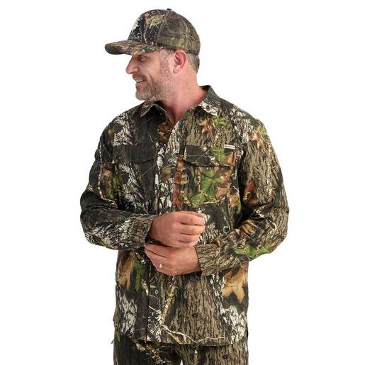 Nomad Men's Mossy Oak New Break Up Rub Line Field Long Sleeve Hunting Shirt - Old school vibes meet modern performance with the new Rub Line Collection. Made from durable, mid-weight cotton canvas with added stretch for ease of movement while drawing a bow, the Rub Line Field Shirt is at home with a grunt call nearby. This is the perfect kit for those hunters that love the comfort and silence that comes from cotton canvas but still want it to move with you throughout the hunt. Durable Washed Canvas Button-Down Interior Sunglass Wipe Double Chest Pockets 98% Cotton / 2% Spandex - Canvas Style: N1500060