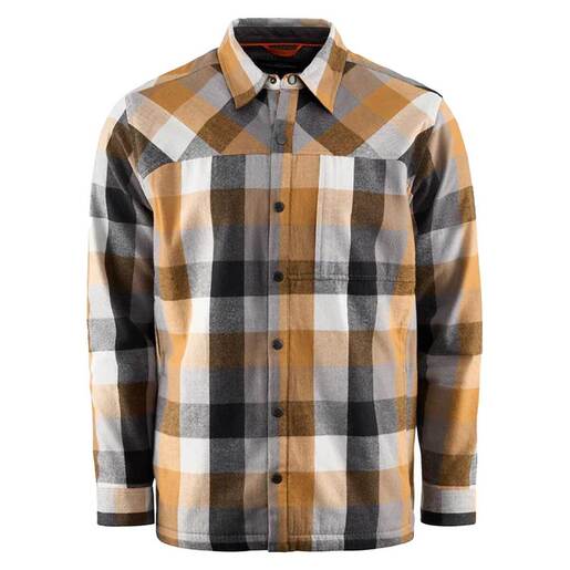 Grundens Men's Bankside Lined Shacket Fishing Jacket - Outfitted with fleece-lined hand pockets, a reinforced zippered chest pocket, and easy release snaps, the Bankside lined flannel is an off-the-water essential built for colder climates. Polyester Grid Fleece Lined Insulation Taffeta Sleeve Lining Offers Easy-Glide Over Layers Zippered Fleece-Lined Chest Pocket Reinforced Elbow Overlays Snap Center Front Closure Fleece Lined Handwarmer Pockets Internal Cell Phone Pocket Style: 40116