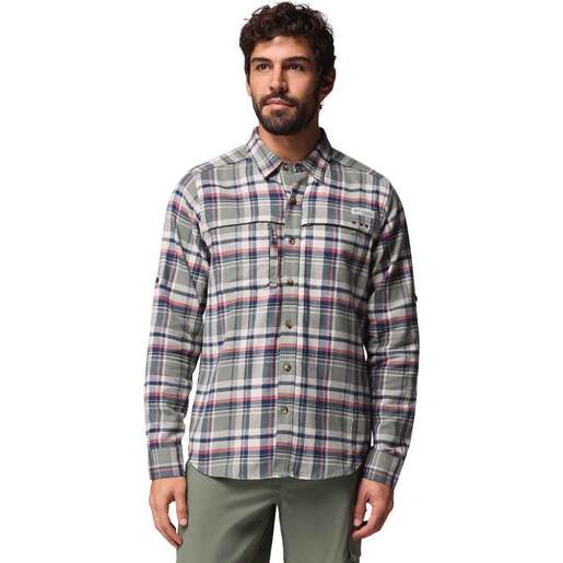 Columbia Men's PFG Wild Cast Flannel Long Sleeve Fishing Shirt - Everyday style meets angler utility. This cotton-blend flannel is soft and comfortable yet functional with its roll-up sleeves and zippered pockets. Omni-Wick keeps you dry and cool by pulling moisture to the fabric’s surface to evaporate, delivering fast-drying, next-to skin comfort in the heat Roll-up sleeves with tab holders for versatility Zippered chest pocket secures valuables Interior security pocket for valuables Chest pockets for small items Button-down collar with hidden buttons Utility loop for added function Style: 2136601