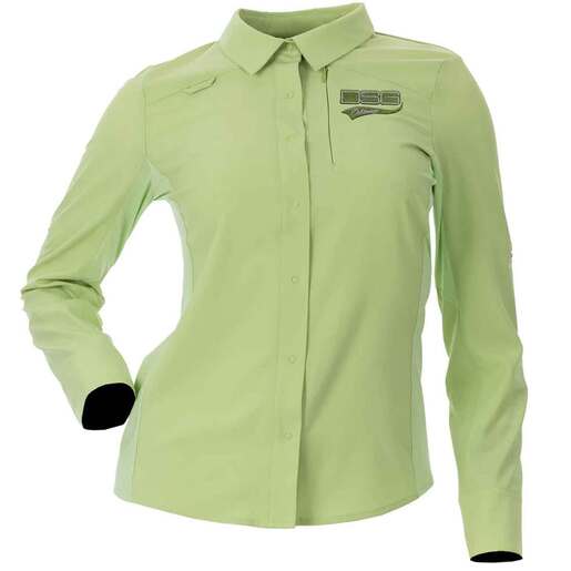 DSG Outerwear Women's Victoria 2.0 Long Sleeve Fishing Shirt - Feminine fitting, effortless functionality, and ultimate flexibility, the Victoria 2.0 Snap Up Shirt does it all. With UPF 50+ protection and strategically placed mesh ventilation panels on your sides, underarms, and hidden at your upper back you will stay comfortable no matter where the day takes you. UPF 50+ protection Moisture wicking Four-way stretch Flexible mesh side and underarm panels for ventilation Hidden upper back mesh ventilation panel for additional cooling and comfort Concealed YKK zipper upper chest pocket Upper chest tool loop Adjustable roll-up sleeves Hidden snap at the bust to prevent gaping Collared neck Classic length Classic fit, comfortably skims over the body Curved bottom hem for coverage Style: 53950