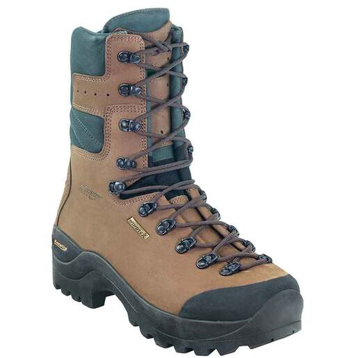 Kenetrek Men's Mountain Guide 400g Insulated Hunting Boots - By using our proven, field tested Mountain Extreme uppers, along with our very aggressive, deep tread K-73 outsoles, you'll step into a boot that surrounds you in comfort with increased durability, proven traction, and like all our boots, they'll never fail no matter where your hunt takes you. 10in tall leather uppers made with 2.8mm premium leather that utilize a one piece vamp construction with no seams down the tongue for better abrasion resistance and waterproofness Reinforced double and triple stitching in high wear areas 7mm nylon midsoles for extra support with heavy pack loads Kenetrek Supportive Footbeds provide foundational arch support and a pronounced heel pocket Anti-corrosive boot hardware that swivels instead of breaking Protective rubber toe cap for extra abrasion resistance 400 gram Thinsulate for comfort in cold weather Windtex waterproof breathable flexible membrane Custom K-73 outsoles provide excellent traction and durability Style: KE-427-G4