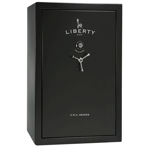 Liberty Safes USA 48 Gun Safe - Textured Black - Introducing Liberty's USA Gun Safe line - an exceptional blend of features tailored for first-time safe buyers. Positioned as the "Goldilocks" choice, it strikes the perfect balance: not too small to compromise utility, nor too large to overwhelm affordability or manageability. With storage for up to 48 long guns, certified 60-minute fire protection, and a level 5 security rating, the USA ensures your peace of mind by safeguarding your valuables with utmost reliability. The USA series gun safe offers both functionality and style and is equipped with chrome hardware, including a distinctive three-spoke handle. Its versatile dual-flex, fully upholstered shelving system, and factory-installed interior door panel provide customizable storage options to suit your needs. Delivering top-tier security features, the USA boasts a UL-listed safe body, a UL-listed top-lit digital SecuRam lock, three hardened steel drill-resistant plates, and thicker hardened Solid State locking bars. With Liberty's proven re-locker mechanism, your safe remains fortified against brute force entry attempts, ensuring unwavering protection for your belongings. Designed with durability in mind, the USA features a tough, textured black finish that resists corrosion and fingerprints, maintaining its pristine appearance over time. Inside, a gray fabric interior adds a touch of elegance while protecting your valuables from scratches. Elevate your security standards with Liberty's USA gun safe—a reliable, feature-rich solution that exceeds expectations. Invest in protecting your firearms and valuables with Liberty's commitment to quality and innovation. Made in the USA 60 Minutes Fire Protection Level 5 Security 6 Solid State Lockiing Bars UL-listed safe body UL-listed top-lit digital SecuRam lock LTL Freight Delivery Notice Due to the size or weight of this item, it will ship via a freight (LTL) carrier. Some LTL items may include an additional shipping charge, which will be shown at checkout. Freight deliveries may take longer to process and arrive than standard parcel shipments (such as UPS or FedEx). Once your order ships, the carrier will contact you directly to schedule a delivery appointment. Please inspect all items carefully before signing the delivery receipt. Your signature confirms that the order was received in good condition. For more information, please review our LTL Shipping & Returns Policy.
