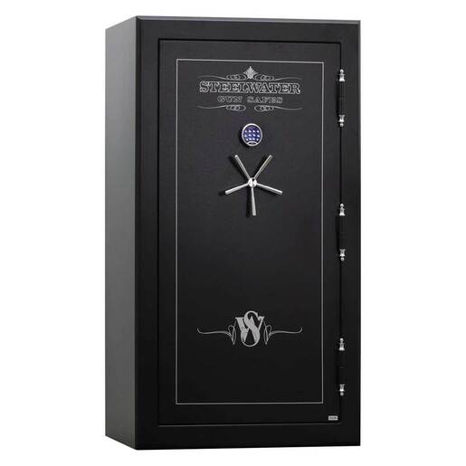 Steelwater MAX Series 45 Long Gun Safe - Semi Gloss Black - The Steelwater MAX Series Gun Safe is designed for maximum security, holding up to 45 long guns with an average capacity of 33-39 firearms. Built with a 3-gauge steel body, a composite 5 1/8in thick door, and 20 massive 1 1/2in solid steel locking bolts, it offers superior protection against prying, drilling, and fire damage. Its EMP-proof digital keypad ensures advanced security and easy access. This safe features 2.5 hours of fire protection at 1875°F, a heat-activated door seal, and a fully upholstered interior with customizable shelving. Additional perks include an LED-lit interior, built-in power outlets with USB ports, and a free door organizer and dehumidifier for added convenience. New & Improved Digital EMP Proof Keypad 2.5 Hours of fire protection at 1875°F Includes a Free Dry Pack 200 gram silica gel rechargeable dehumidifying box Standard Automatic Interior LED Lighting 1 High-Security Emergency Bypass Key Heavy Duty Interior Door Organizer Includes a Free high grade UL Listed power supply with (3) AC outlets and (2) USB charging ports LTL Freight Delivery Notice Due to the size or weight of this item, it will ship via a freight (LTL) carrier. Some LTL items may include an additional shipping charge, which will be shown at checkout. Freight deliveries may take longer to process and arrive than standard parcel shipments (such as UPS or FedEx). Once your order ships, the carrier will contact you directly to schedule a delivery appointment. Please inspect all items carefully before signing the delivery receipt. Your signature confirms that the order was received in good condition. For more information, please review our LTL Shipping & Returns Policy.
