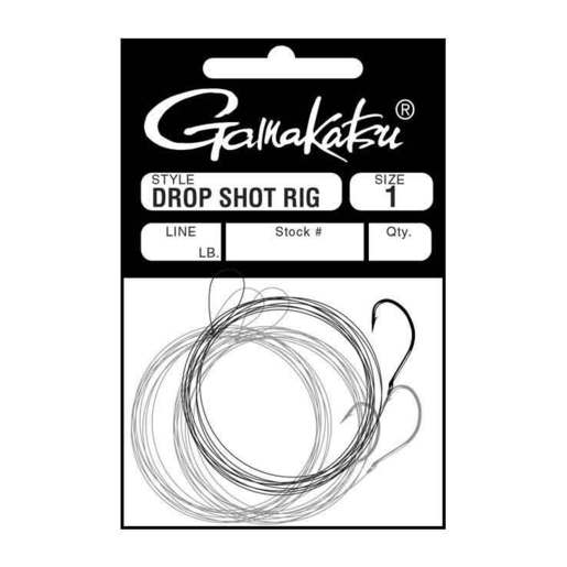 Gamakatsu Drop Shot Rig - A pre tied drop shot rig ready to fish right out of the package tie on a lead and you are ready to go with the hook rigged in the middle of premium Japanese monofilament. The Drop Shot Rig features the super sharp Gamakatsu Drop Shot hook. This is a perfect rig for that subtle finesse presentation that is needed in areas of high fishing pressure and clear water situations. Features Gamakatsu Drop Shot HooksConically Needle Honed PointsMade Of High Carbon SteelPre Tied With 78 -Inches Of Premium Japanese Monofilament