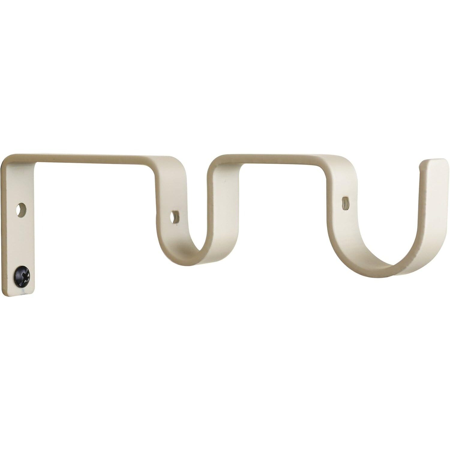Heavy duty steel double curtain rod bracket fits 3/4" or 5/8" rod Projection from wall to the center of the first loop is 3". Projection from wall to the center of the second loop is 5 1/2". Total length of the bracket is 6".