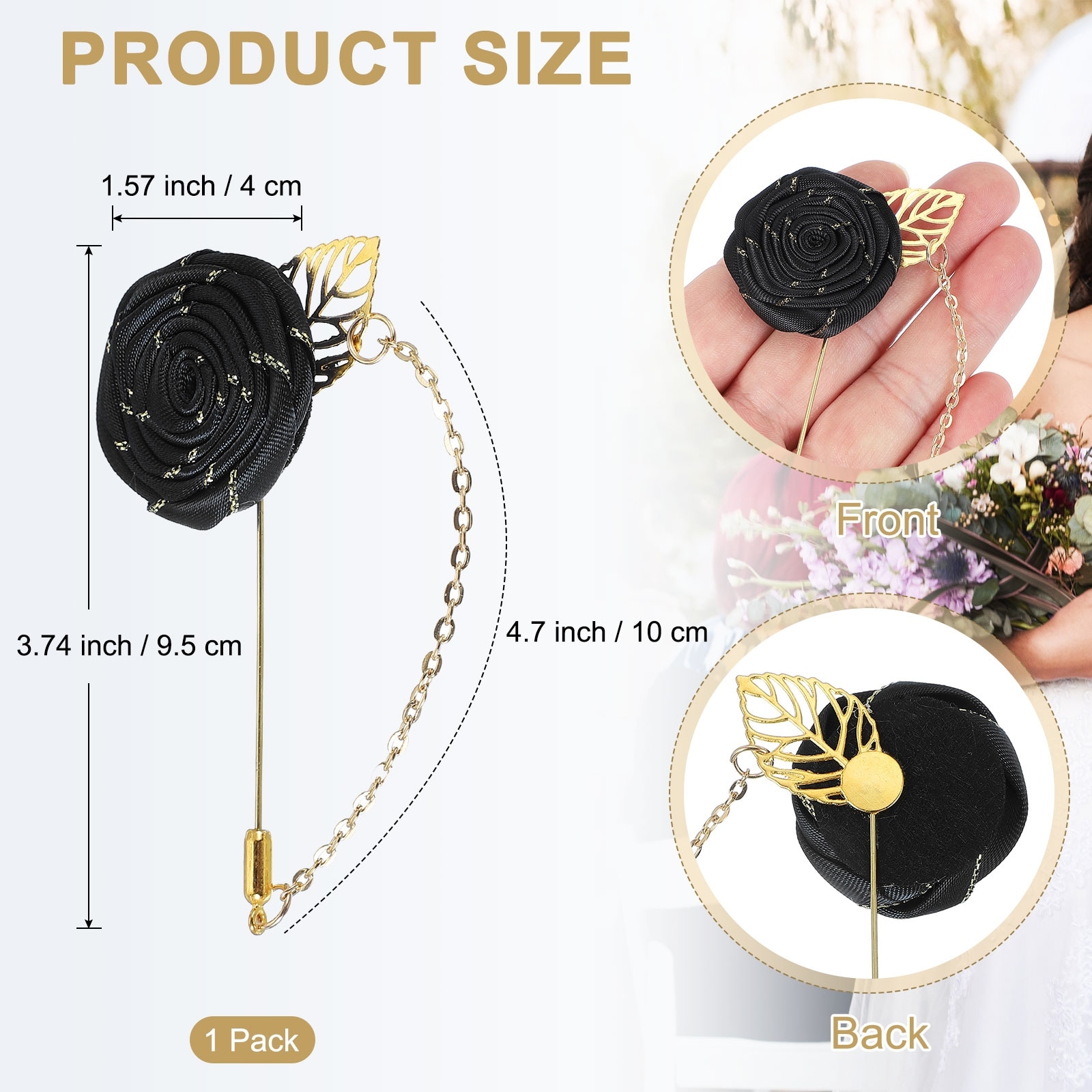 Rose Lapel Pin for Men Suit, Cloth Flower Brooch Handmade Wedding - 9.5 cm