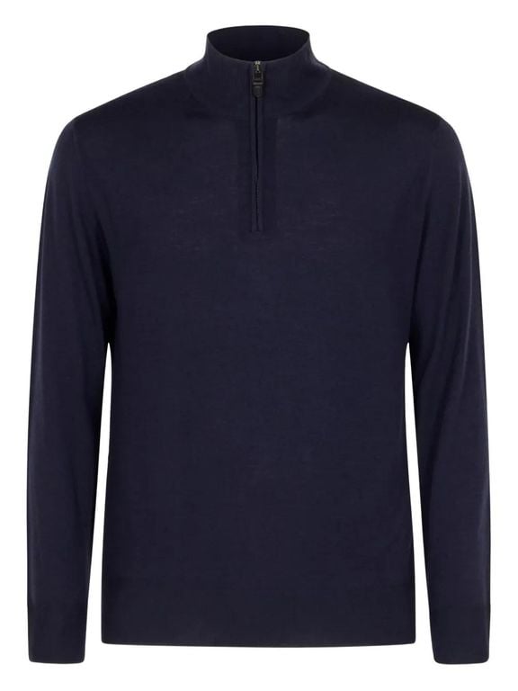 High-Neck Zip-Up Sweater - Blue - Canali Knitwear