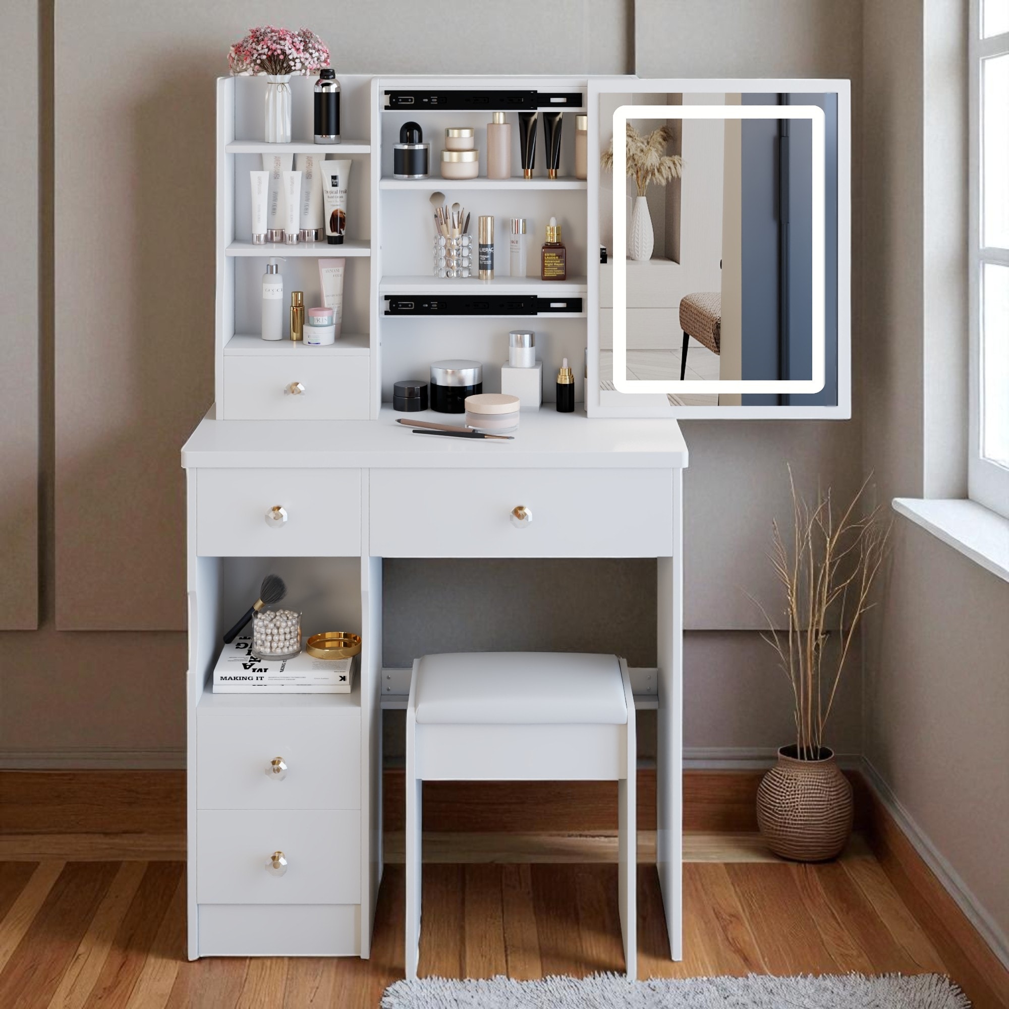 Modern Makeup Vanity Desk with Drawers,Space-saving Dressing Table Set
