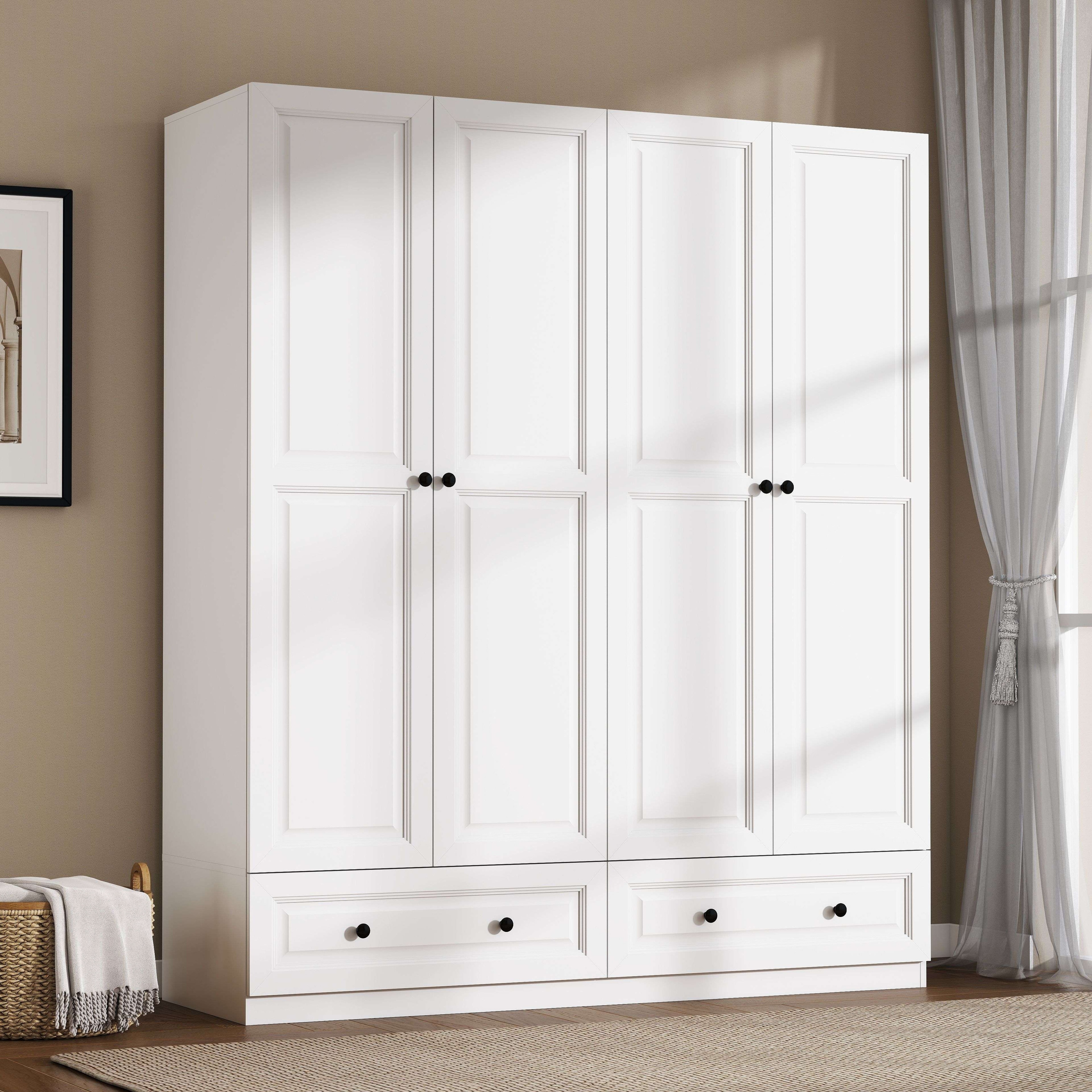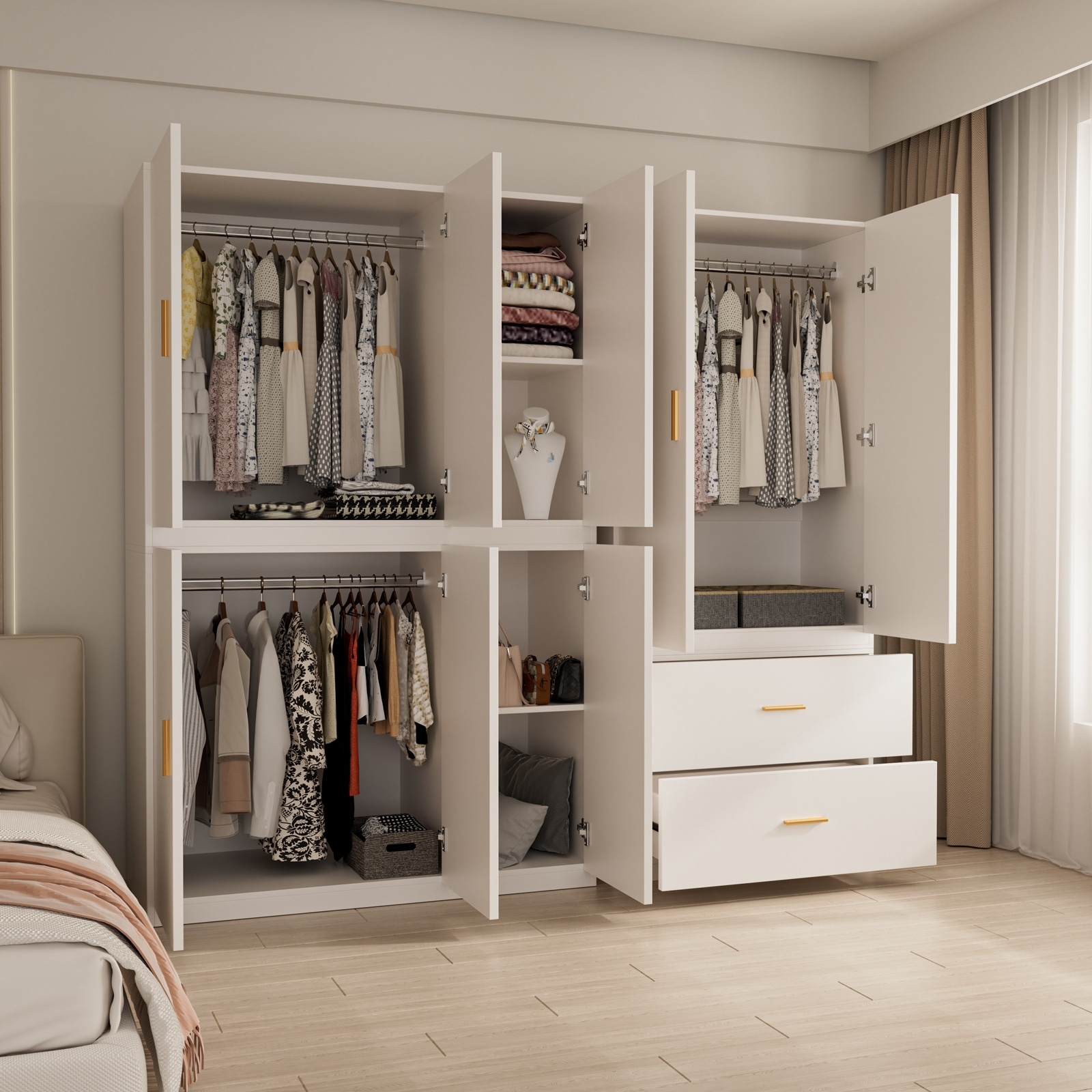 High Armoire Wardrove Closet With 2 Drawers, 2 Door Cabinet, 1 Shelf And Hanging Rod, Bedroom Clothes Storage Cabinet Organizer