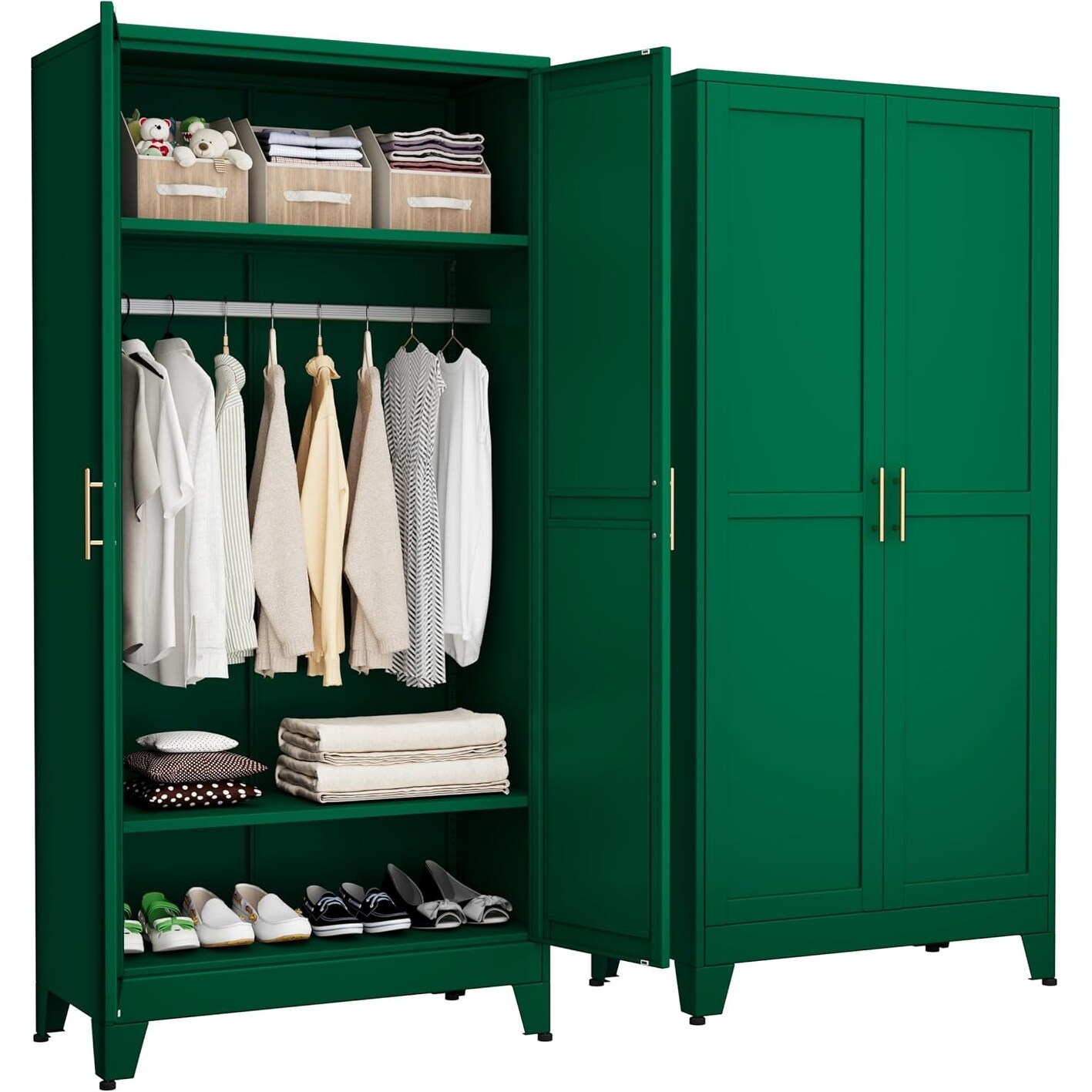 71 Inch Green Metal Wardrobe with Hanging Rod and Adjustable Shelves for Bedroom, Bathroom, and Home Office