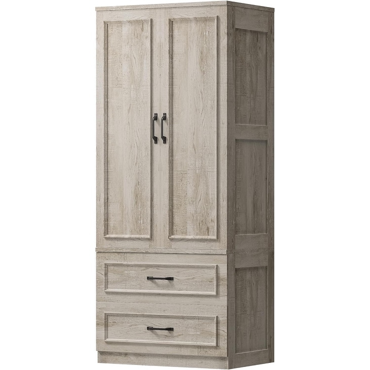 Freestanding Wooden Wardrobe with 2 Doors and 2 Drawers, 70 Inch Height, Rustic Maple Finish