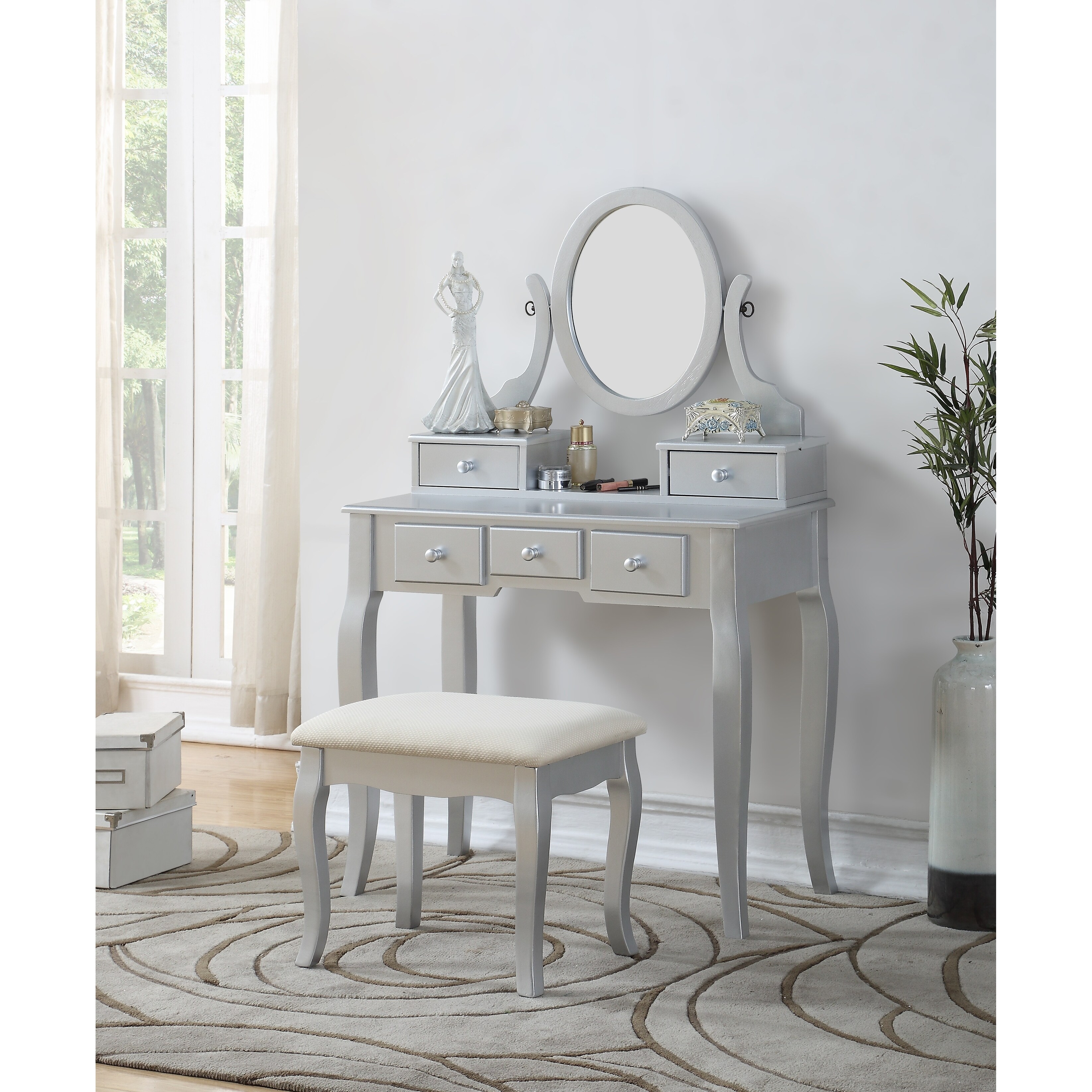 Wood Make-Up Vanity Table and Stool Set, Ashley Wood Makeup Vanity Table and Stool Set