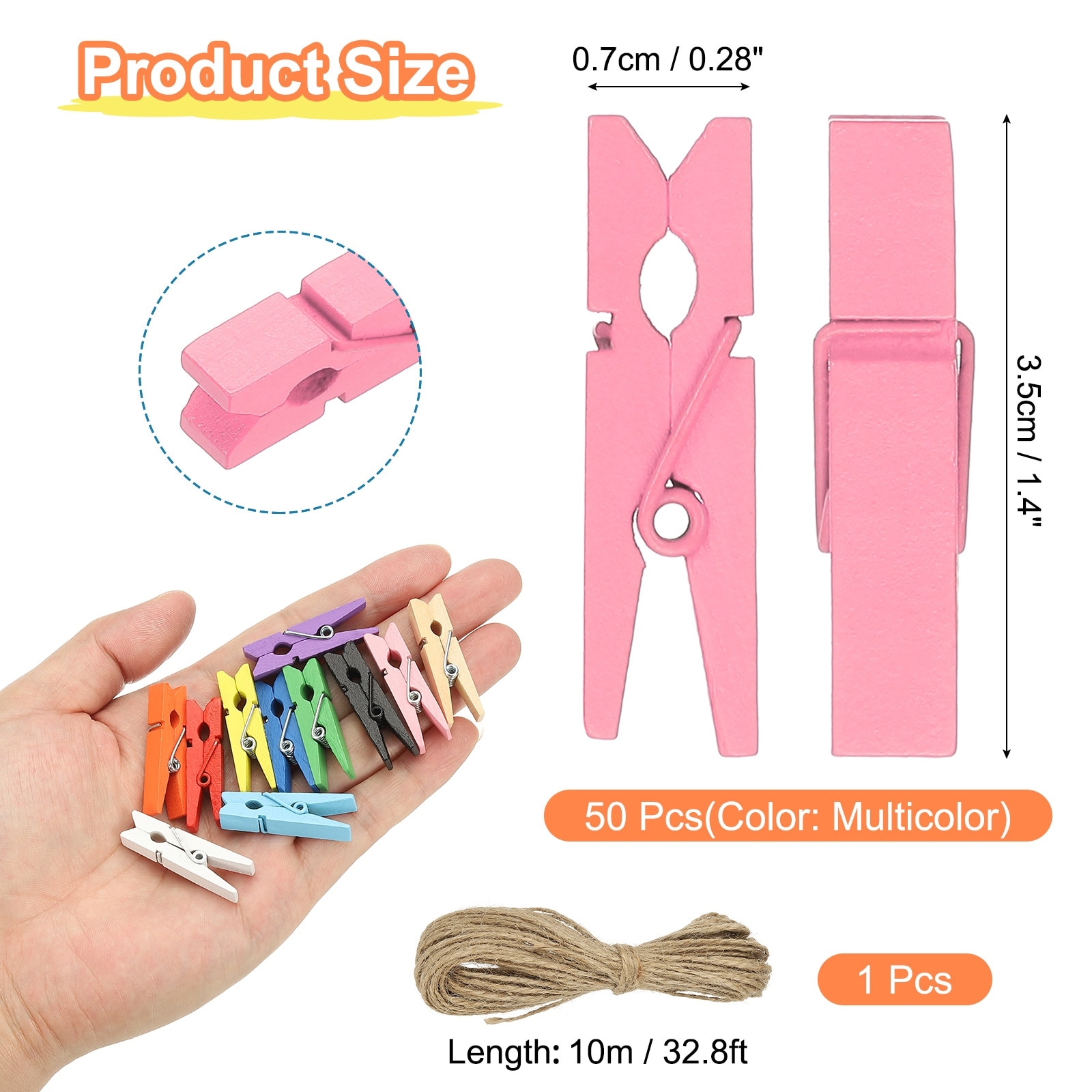 Wooden Mini Clothes Pins with Jute Twine - 3.5X0.7CM