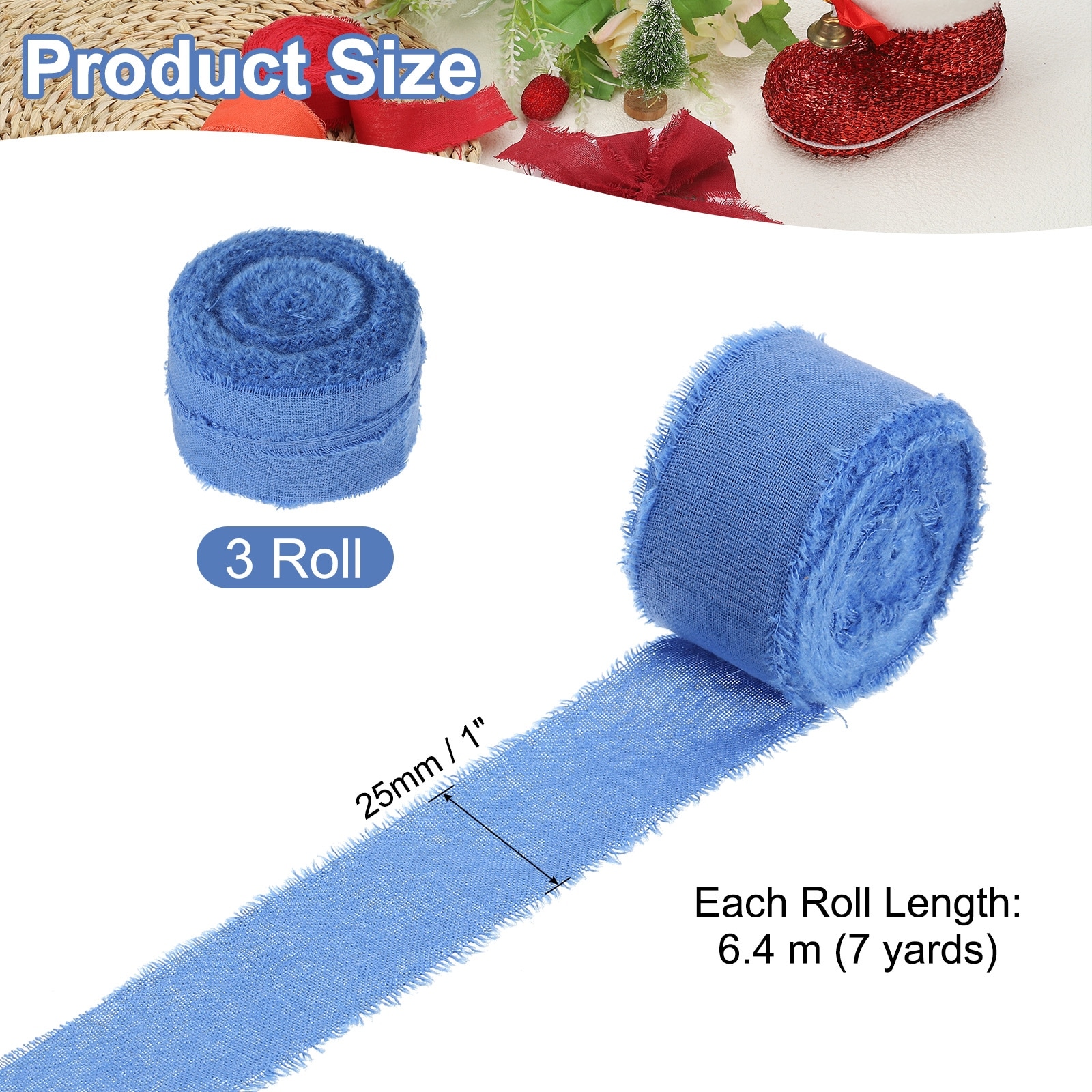 3Roll Cotton Handmade Fringe Ribbon 1"x21Yd Frayed Fringe Ribbons - 7Yd