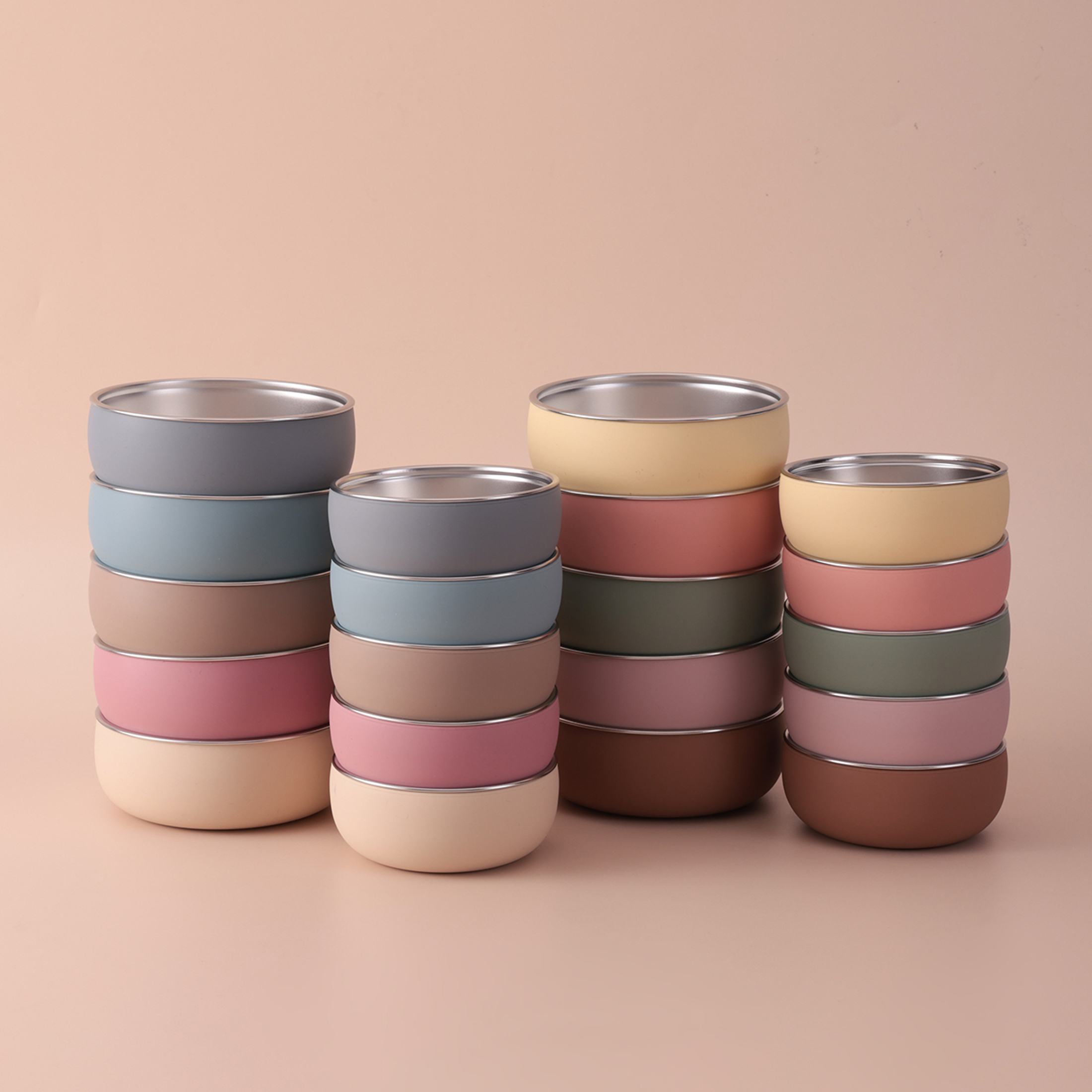Stainless Steel Silicone Baby Feeding Set BPA Free Detachable Sucker Bowls, With Fork Spoon Easy Clean Children dasty Lilac