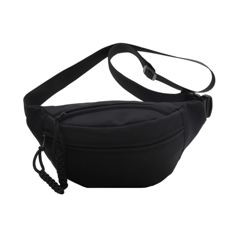 Korean Style Canvas Chest Waist Bag For Women, Portable Shoulder Waist & Sports Fanny Pack With Zipper black