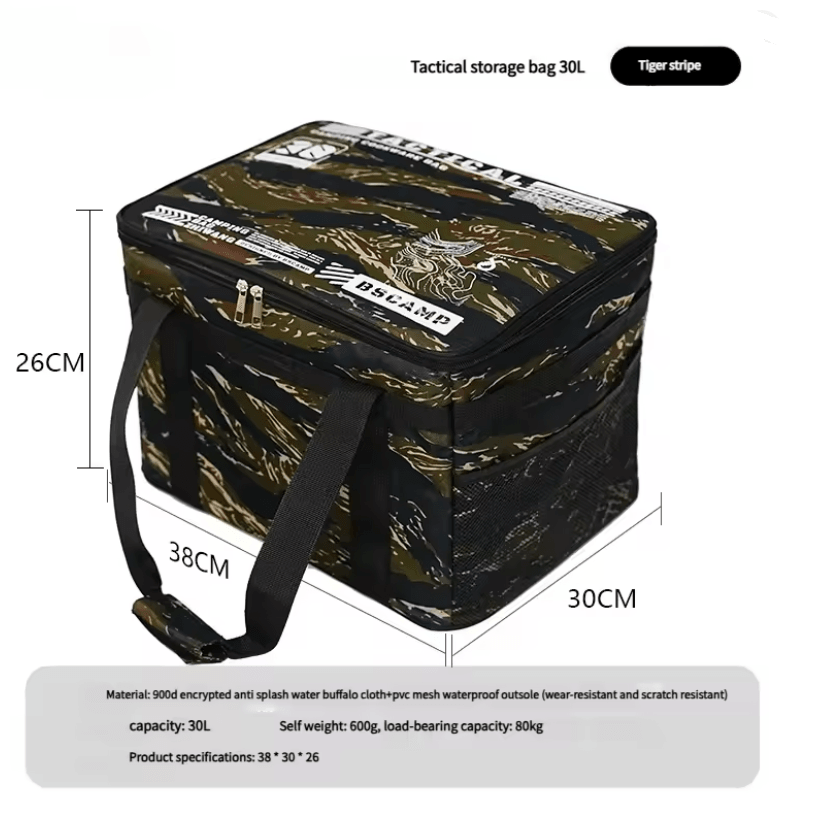 Tactical Camping Storage Bag Insulated Folding Box Waterproof 30L Or 42L tiger Strip 30l