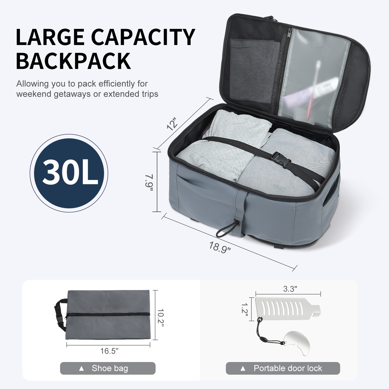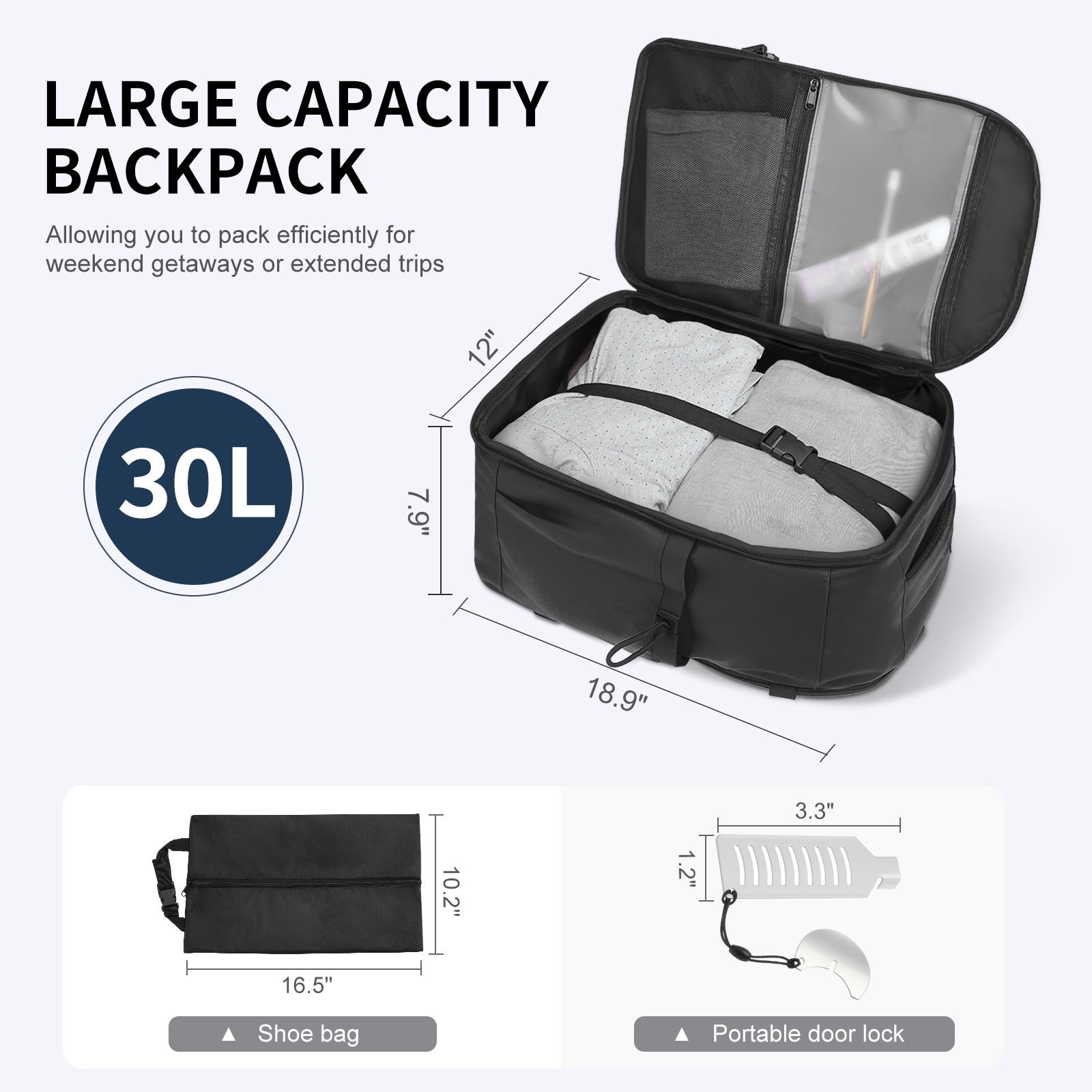 Carry on Travel Backpack, Flight Approved Personal Item Bag for Men Women, Door Lock, USB A/C Port
