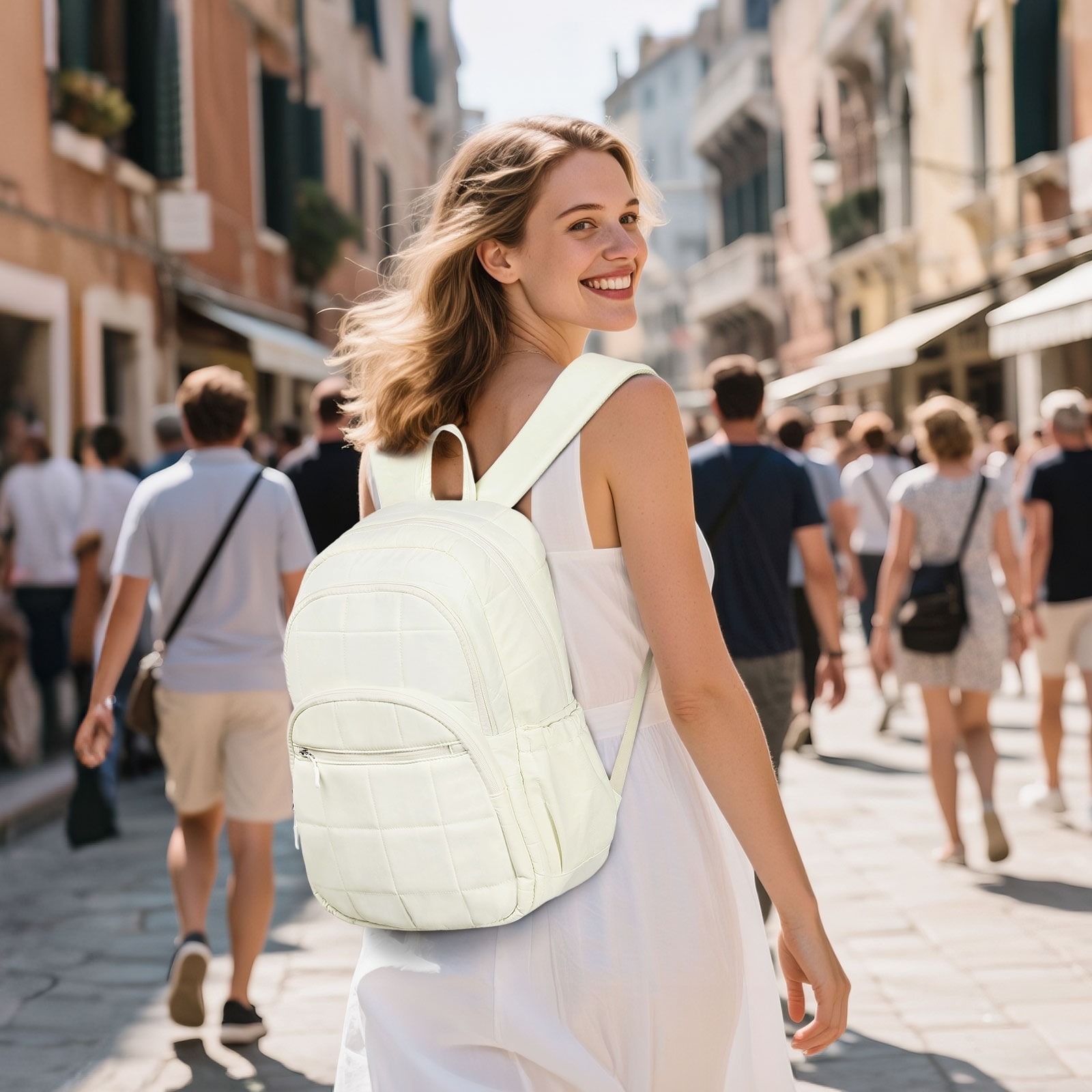 Quilted Laptop Backpack for Women, Casual Work Daypack for Laptop, Travel Bag with Luggage Strap