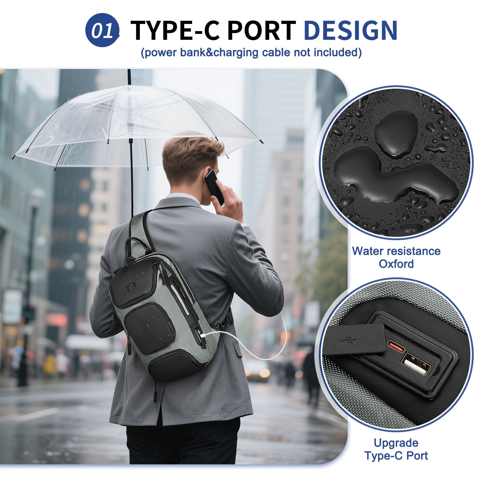 Sling Bag for Men, Anti Theft Mini Backpack with USB Charge Port, Convertible Crossbody One Strap