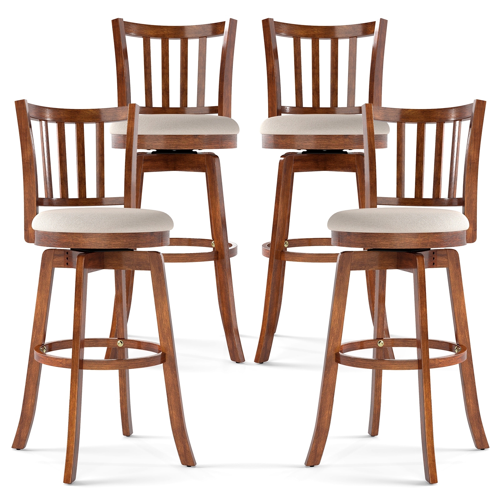 Gymax 30.5'' Swivel Barstools Set of 4 w/Backrest & Upholstered Seat
