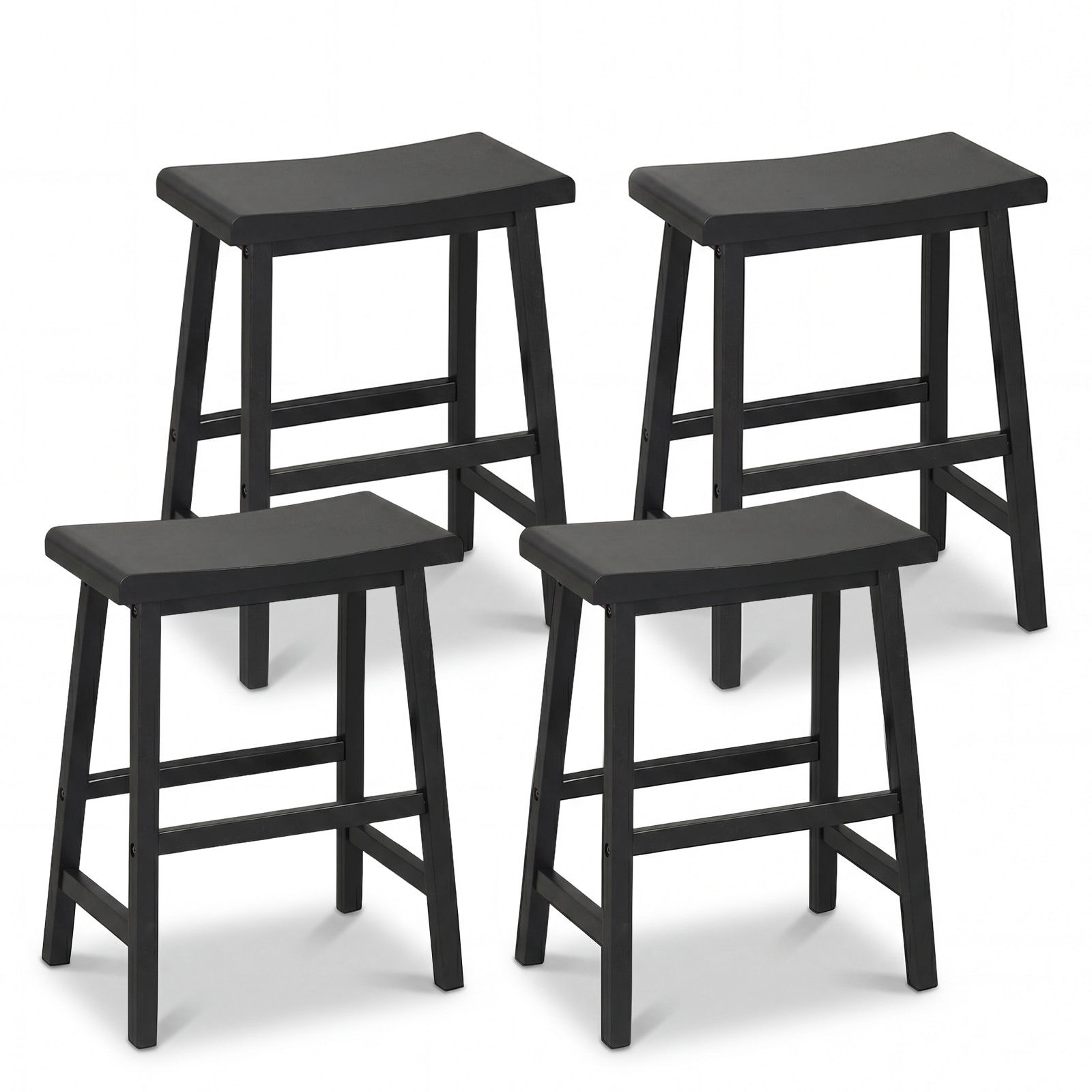 Gymax Solid Wood Saddle Bar Stools Set of 4 Backless Wooden Barstools