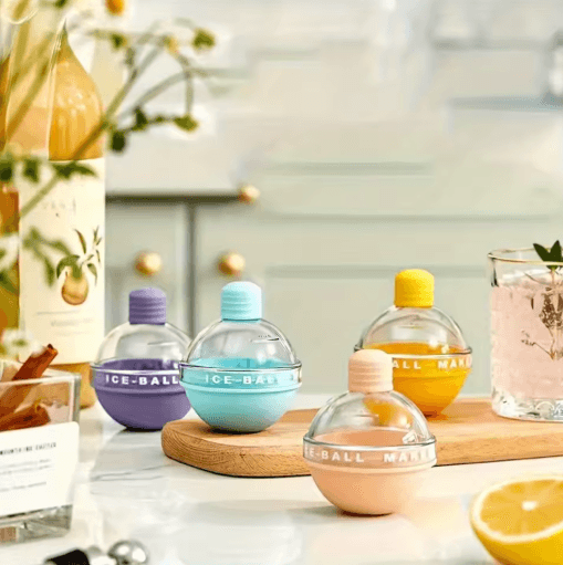 Spherical Ice Molds Reusable Ice Ball Trays For Whiskey Cocktails And DIY Drinks 4pc Yellow