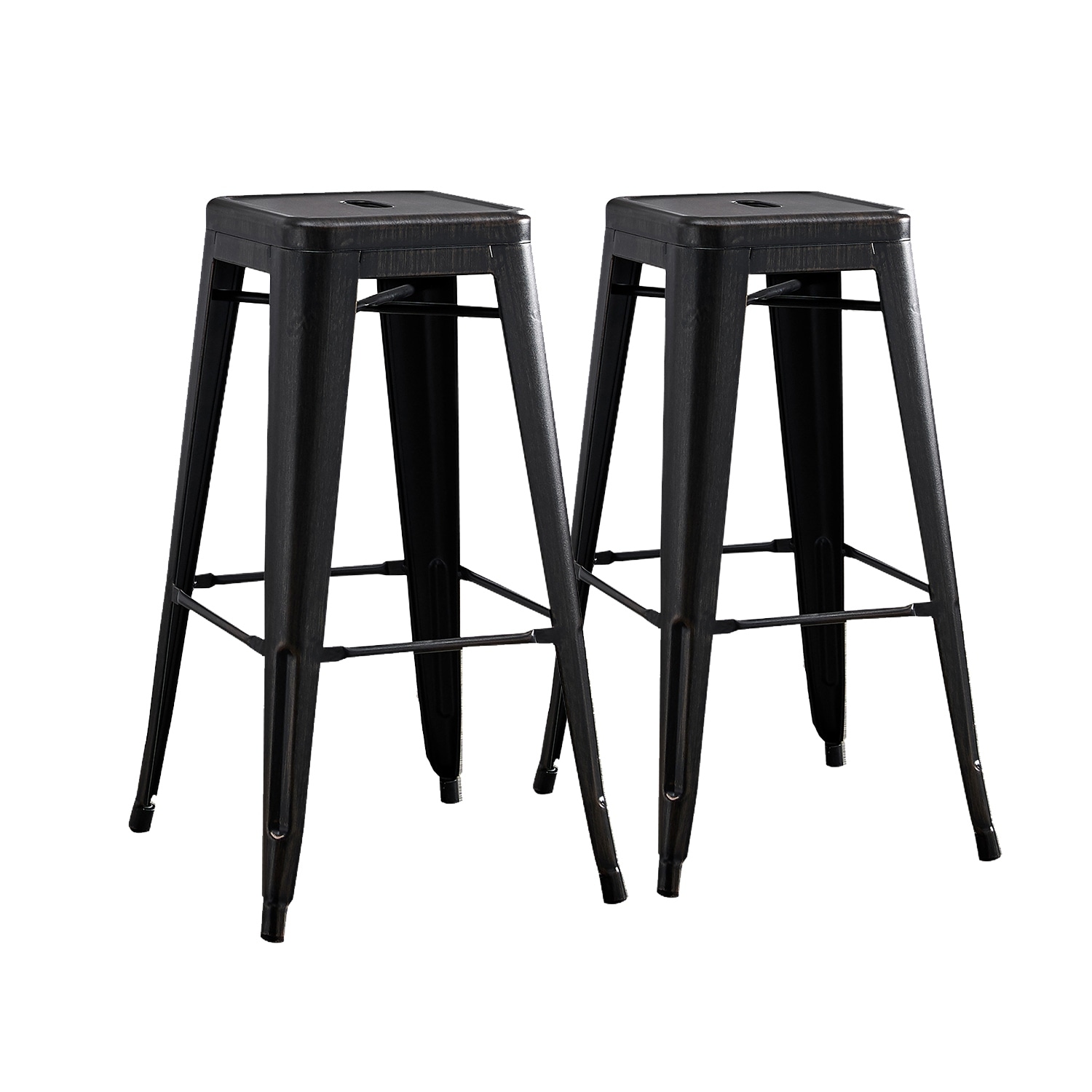 30" Seat Backless Modern Light Weight Vintage Costal Metal Bar Stools Without Back and 4 Leg Design (Set of 2)